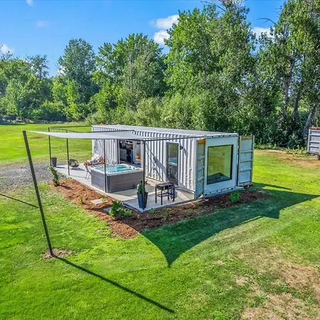 The River Box - Luxury Container Home - Views And Hot Tub features a patio for guests' comfort.